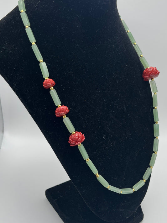 Lotus and Green Adventurine Necklace